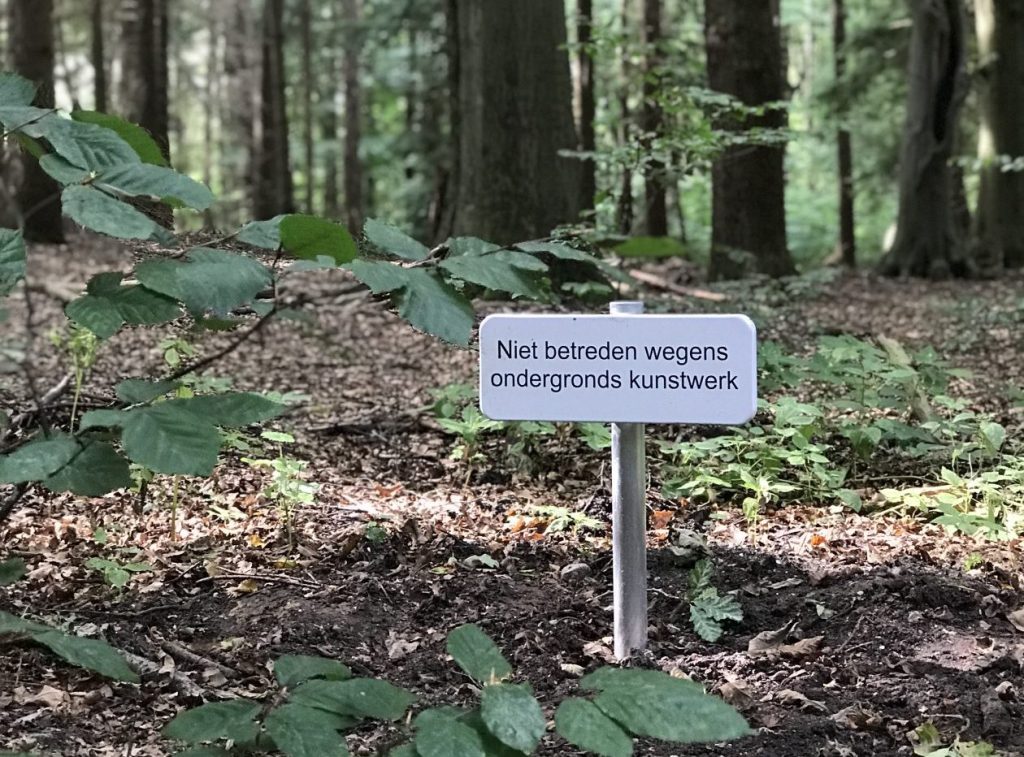 Het werk dat Reinier in het bos neerzette, is een standaard wit stak metalen bordje, in dit geval met de tekst “niet betreden wegens ondergronds kunstwerk “. Het werk is enerzijds een poging de bezoeker bewust te maken van het kunstwerk van Willemien Schaap, gemaakt van hout en takken dat hier in 2018 is neergezet en door de tijd is vergaan, teruggeven aan de natuur. Anderzijds is het een benadrukken van het onzichtbare proces van natuur en creativiteit, van het maakproces, het onderliggende broeiende dat als de tijd rijp is, naar boven en tot leven komt.
