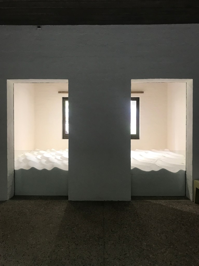 Sybren Renema gebruikte het idee van Mozes’ desillusie om de beruchte woorden van ontdekkingsreiger Robert Falcon Scott aan te halen. Zijn neon installatie verlicht de donkere hoek in de gang, het staat er bijna als een baken, het trekt je naar zich toe, prikkelend en uitnodigend om verder te onderzoeken. De verwachting van dat waar je naartoe onderweg bent, alle voorbereidingen en het enorme afzien neem je voor lief in dienst van dat waar je je zinnen op hebt gezet. Om vervolgens aan te komen bij een plek die je op de een of andere manier op het allerlaatste moment wordt ontnomen. Great God, this is an awful place…