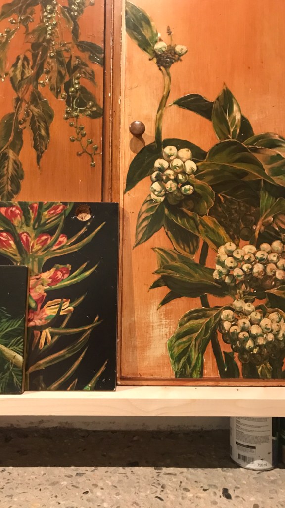 In de grotere zaal hengen twee enorme vellen roze papier naast elkaar. Dit beeld, zoals meer van Esthers werk verandert langzaamaan van vorm. De zaden die ze verwerkt in het dikke papier ontkiemen en groeien, worden zo lang en zwaar dat ze naar beneden hangen en een harig groene zweem op het roze papier laten ontstaan. Elk zaadje vindt de makkelijkste weg om het best mogelijk te groeien. Esther ziet het als een zoektocht naar vrijheid, naar het licht toe en toch altijd verankerd in je eigen fundament.