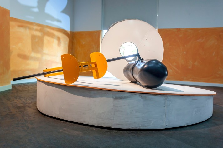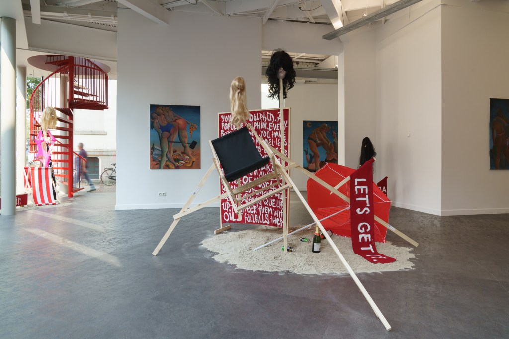 Voor de expositie Vormaliteit bedacht Kevin een format, een setting waarin hij zijn werk zou willen plaatsen. Hij maakte een omgeving die doet denken aan een showroom of een beursstand. Een vluchtig decor, dat in dienst staat van de objecten. Vaak is een galerie of expositieruimte een witte kubus met witte strakke muren waarin de kunstwerken overduidelijk gepresenteerd worden als kunst. Maar hier, op deze manier ontkomen de sculpturen van Kevin niet aan een commerciële lading. Wanneer is iets een kunstwerk? Wanneer is iets een commercieel product? Is er überhaupt een grens tussen deze twee begrippen?